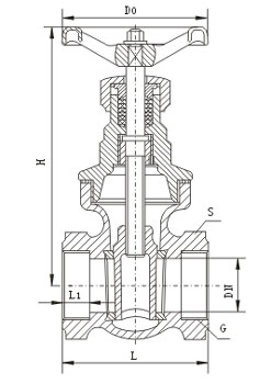 內(nèi)螺紋暗桿楔式閘閥主要外形尺寸: